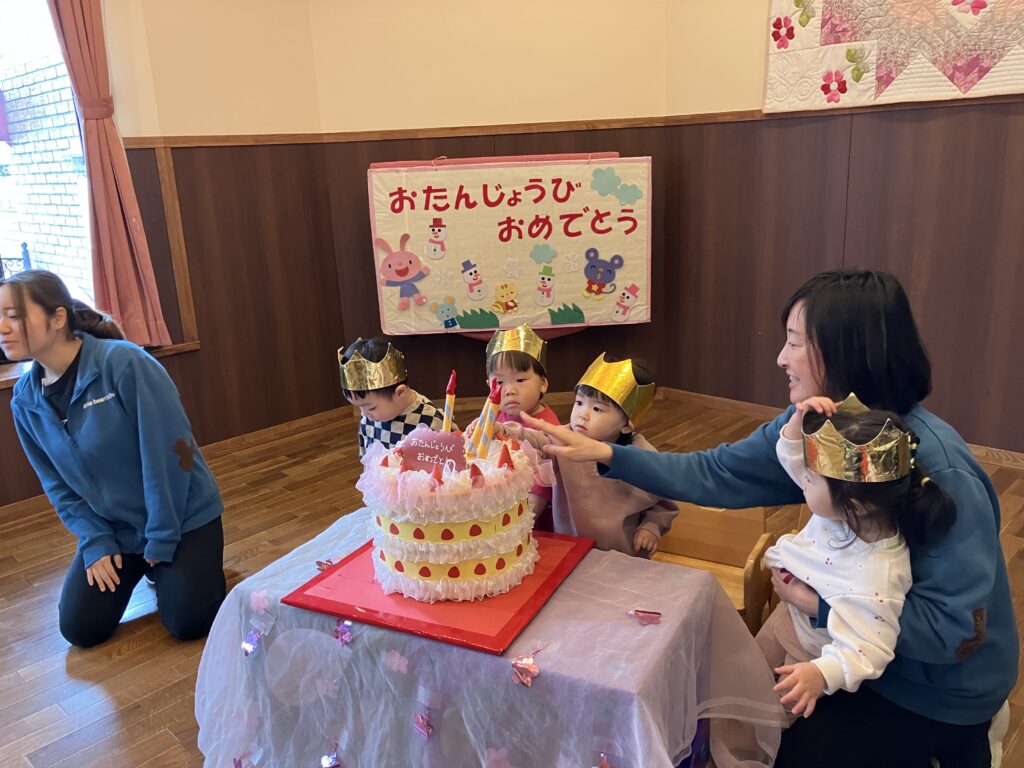 今日は2月生まれの誕生会!先生の名前を呼ばれると、「はーい✋」と手を挙げて、元気に返事をしてくれました。お楽しみは鬼退治...