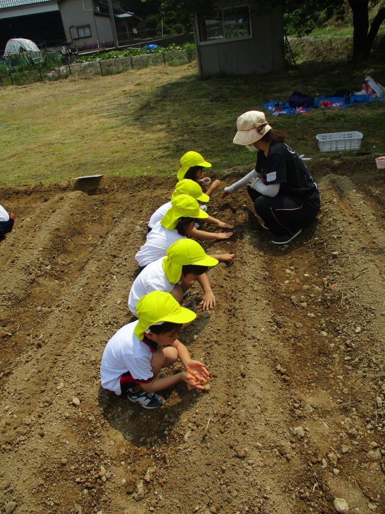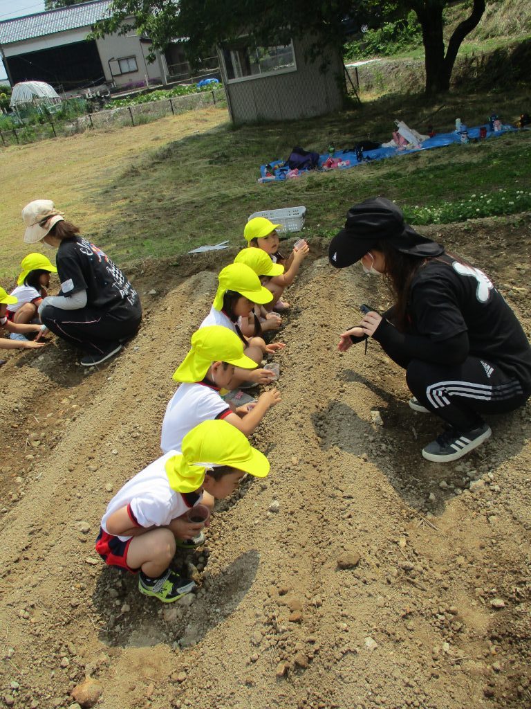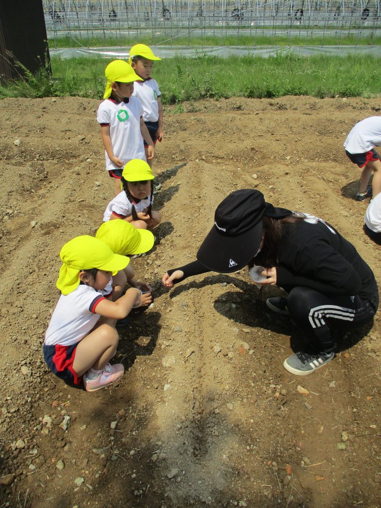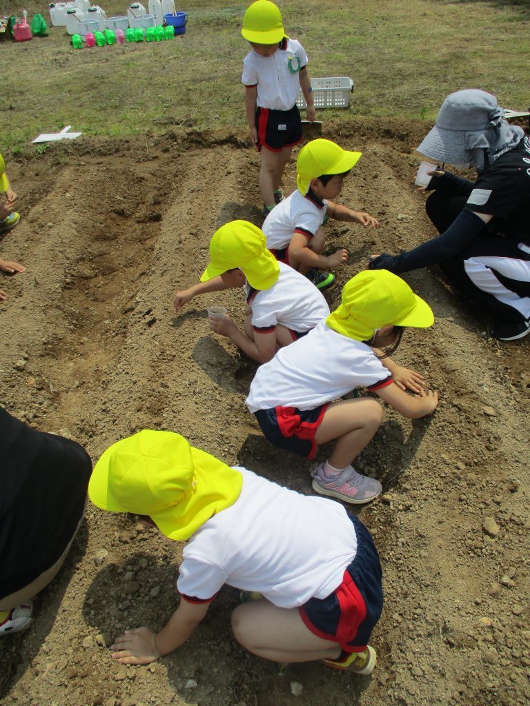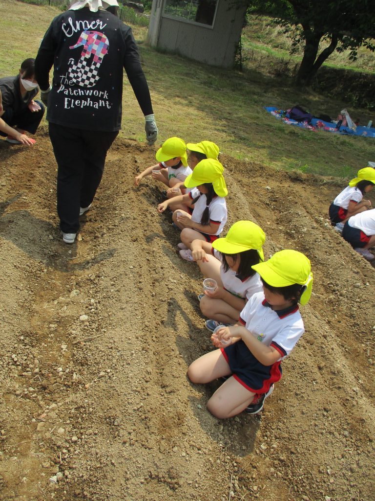 うめ組の子どもたちと清水北公民館の職員の方と一緒にコスモスの種まきを行いました