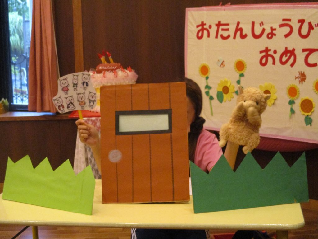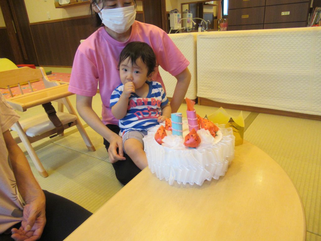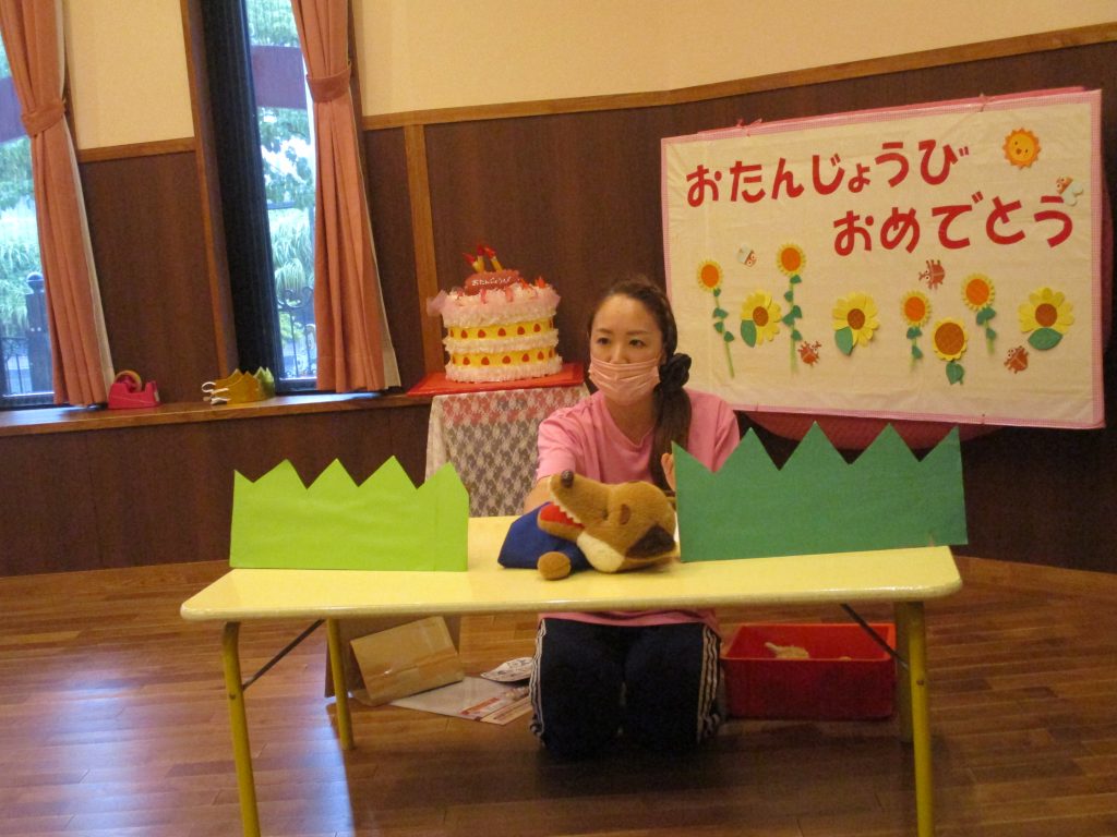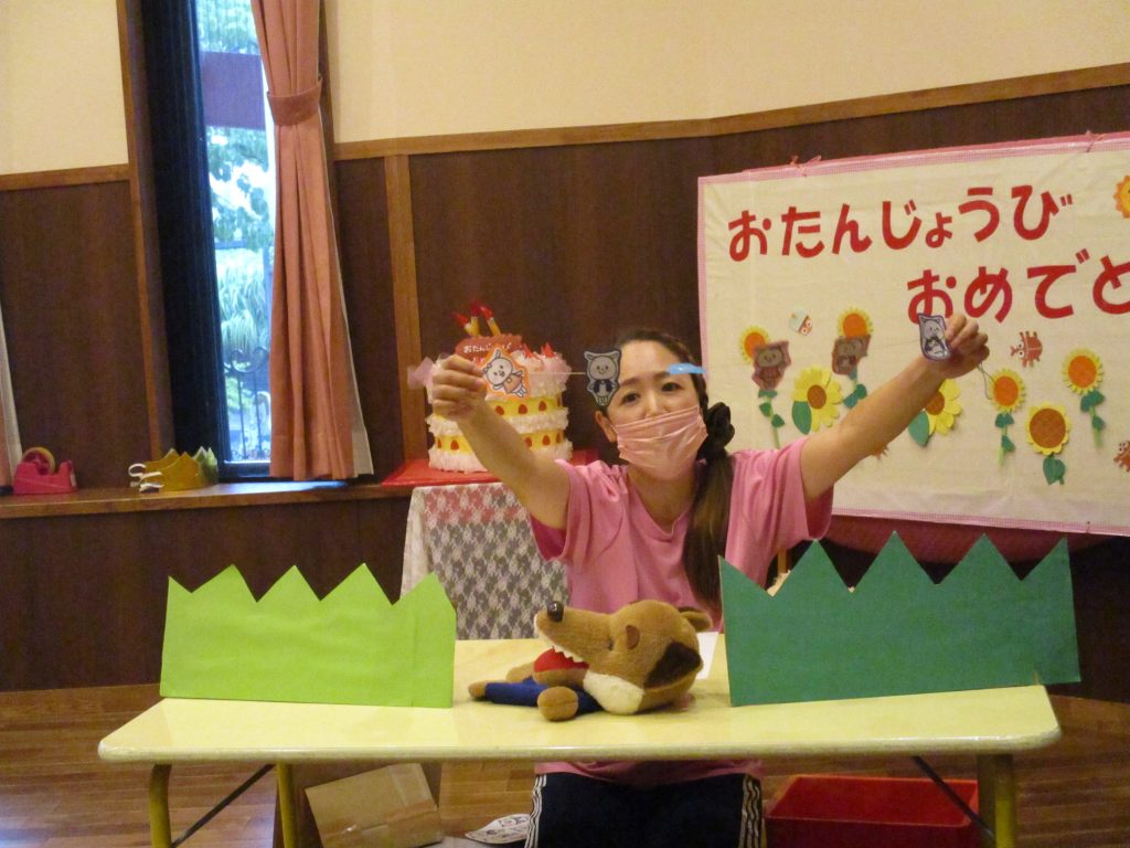 8月の誕生会(未満児クラス) 2022/08/04 今月は感染予防により、各クラスでの誕生会を開きました お楽しみは『おおかみと7匹の子ヤギ』のペープサートを楽しみました みなさんお誕生日おめでとうございます🎂
