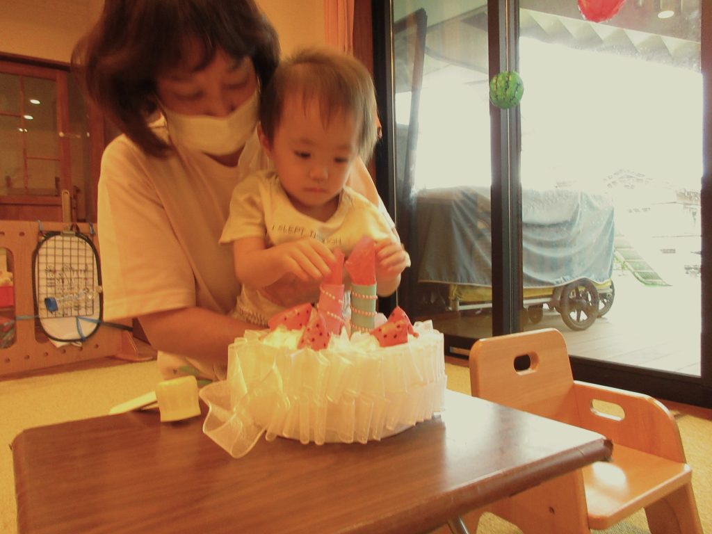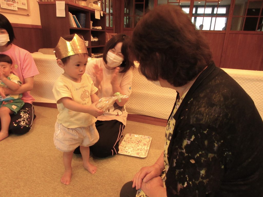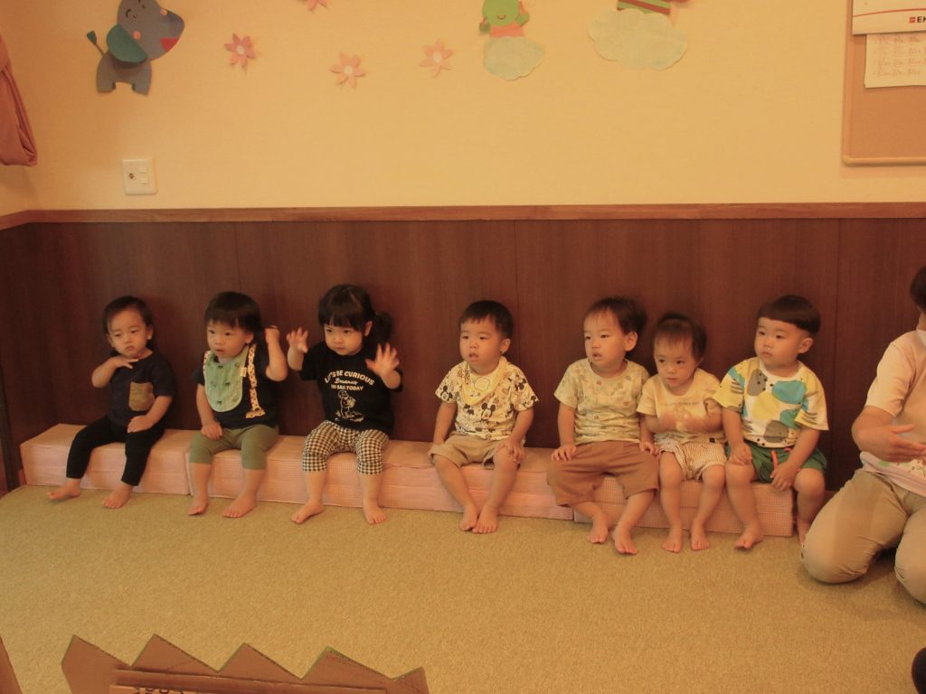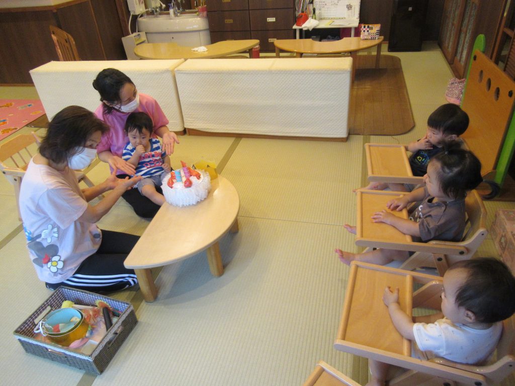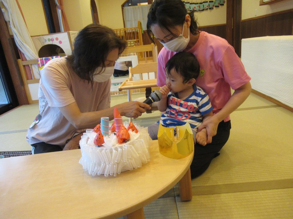 8月の誕生会(未満児クラス) 2022/08/04 今月は感染予防により、各クラスでの誕生会を開きました お楽しみは『おおかみと7匹の子ヤギ』のペープサートを楽しみました みなさんお誕生日おめでとうございます🎂