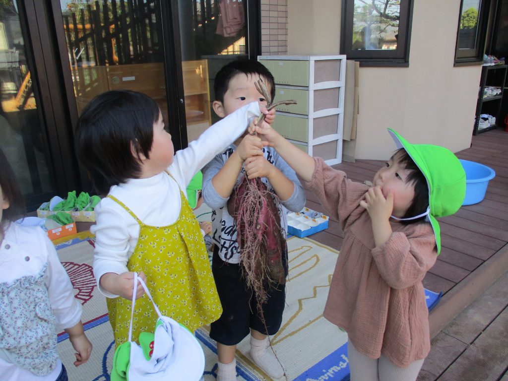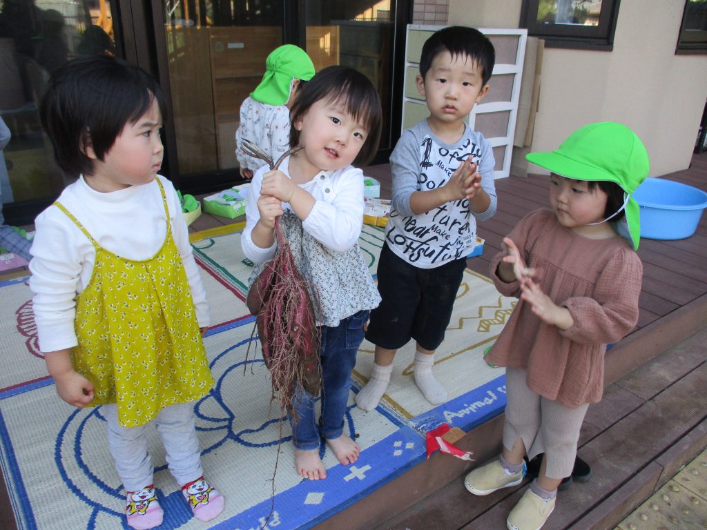 こども園に戻る途中に、近所の畑の作業をしている方から大きなさつま芋をいただきました🍠