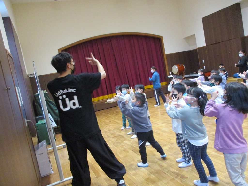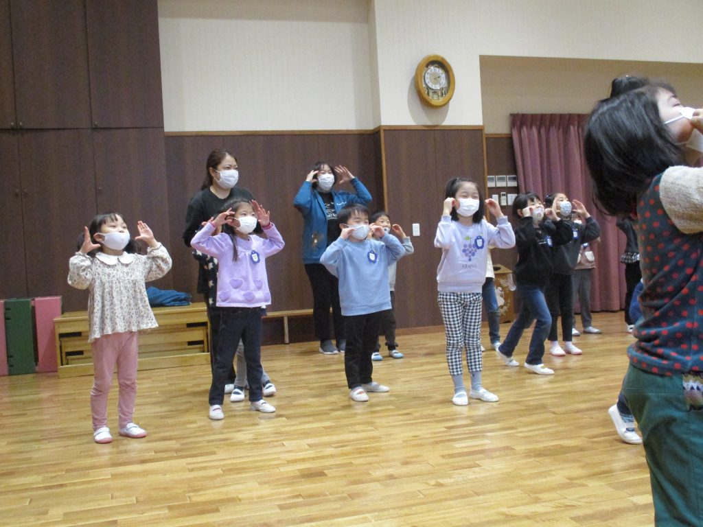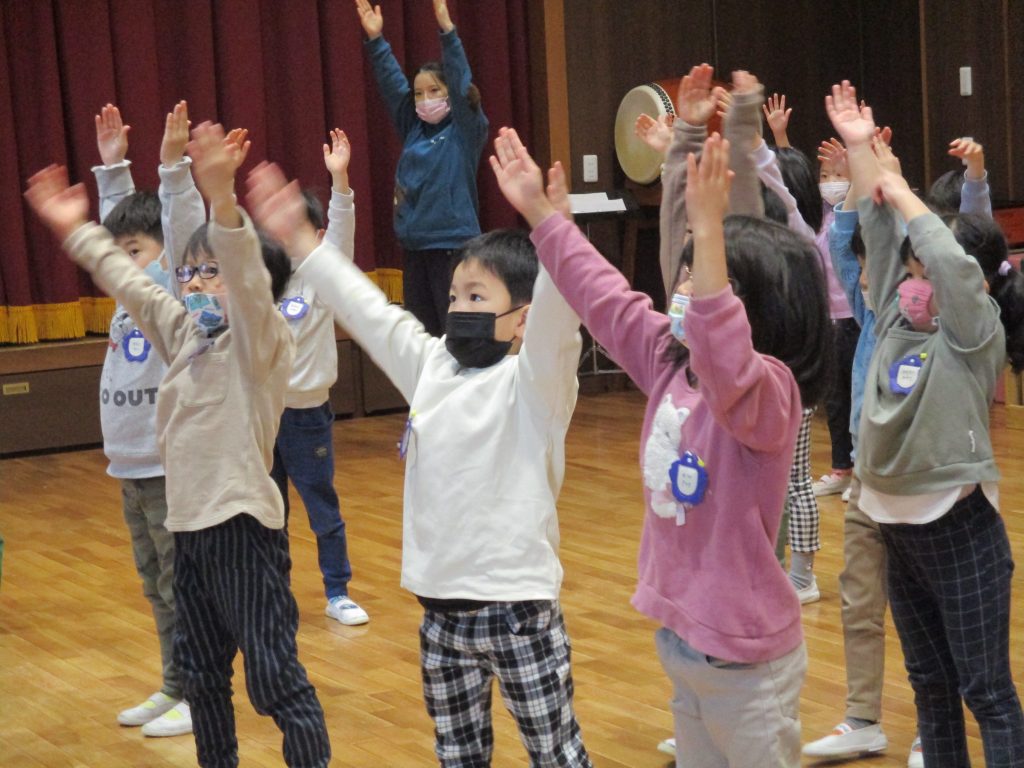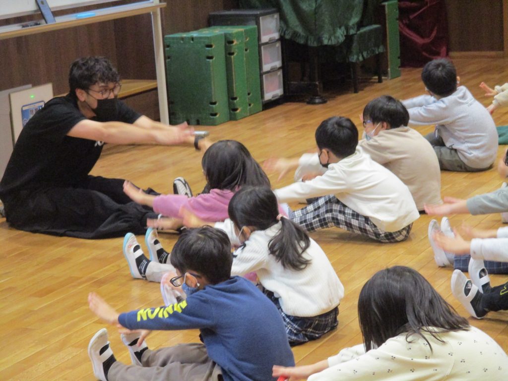 簡単な手話から始まり、ダンスのためのストレッチをしたり、歌詞に合わせた手話を子どもたちと一緒に表現していきました