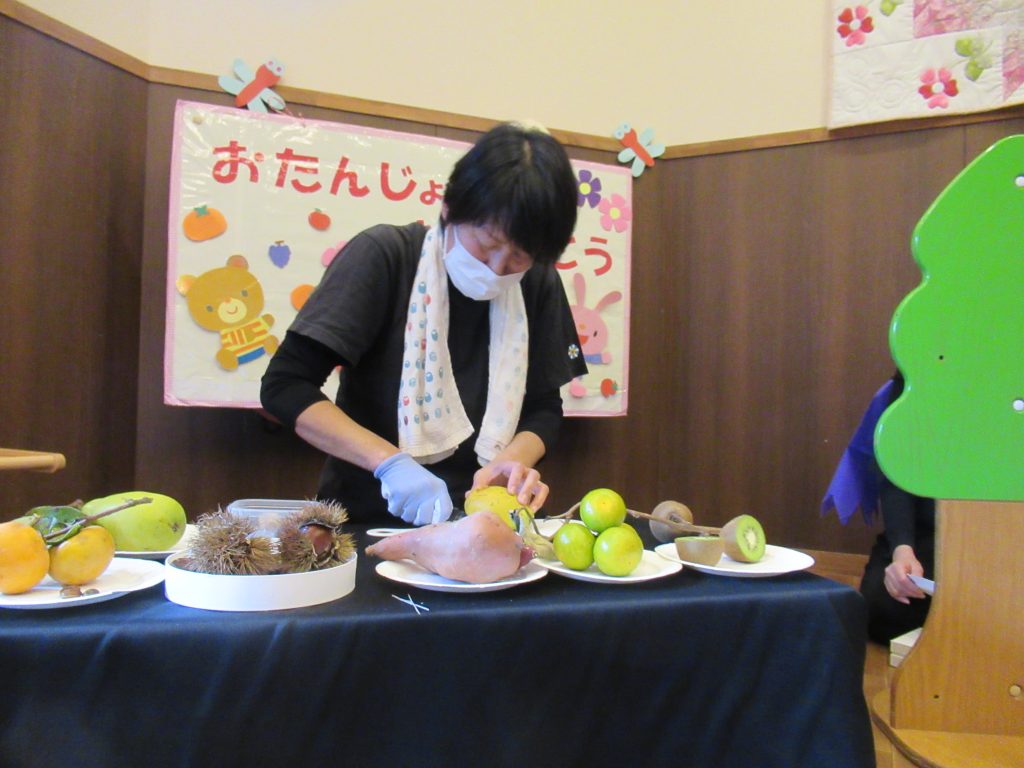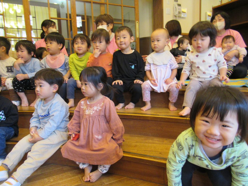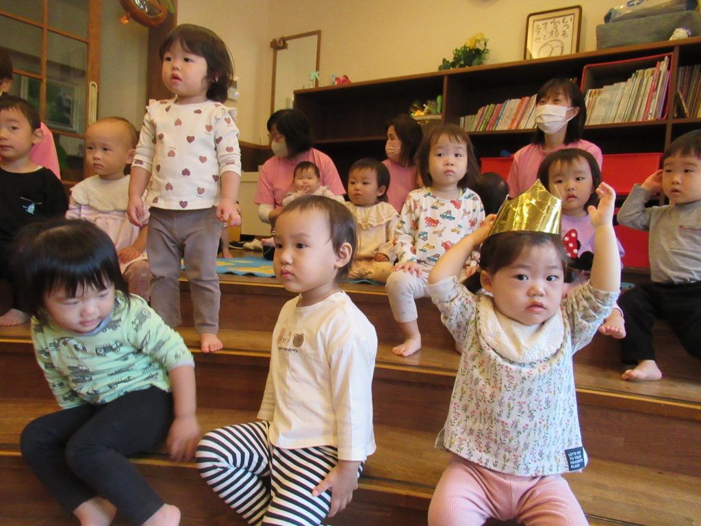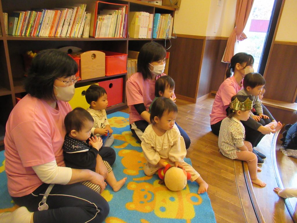 ハロウィン誕生会(未満児クラス) 2023/10/26 10月生まれの子どもたちの誕生会を開きました ハロウィン色いっぱいのふれあいホールでは、色が変身するお化けが出てきたり、秋の歌を歌ったり、秋の味覚がいっぱいの集まりを楽しみました 園長先生からプレゼントをいただきました 誕生日のみなさん、おめでとうございます