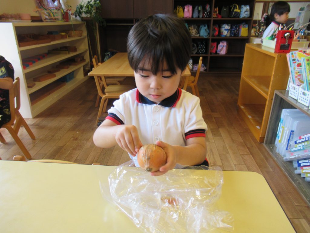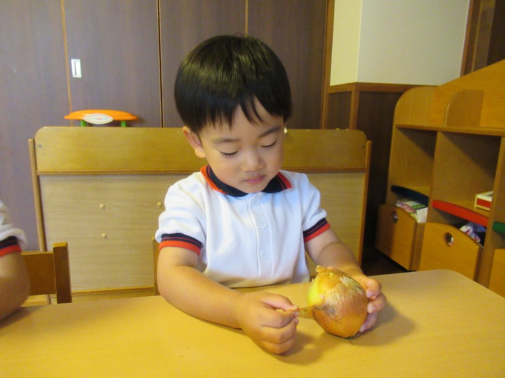 HOME › 活動アルバム › 2024年 › 玉ねぎの皮むき体験(さくら組)