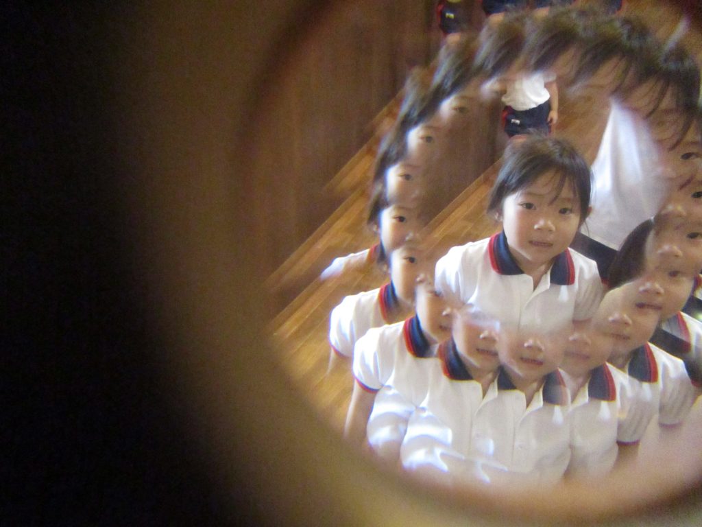 観察棚より(9月9日) 2024/09/09 観察棚に「とのさまバッタ」と「しょうりょうバッタ」が仲間入りしました つゆむしやイナゴも加わって観察棚がにぎやかになりました 子どもたちがのぞく『虫眼鏡ルーペの複眼レンズ』でバッタをのぞいてみました 子どもたちと写真を確認すると、私たちも写して~~と 意外な写り方で子どもたちと楽しめました