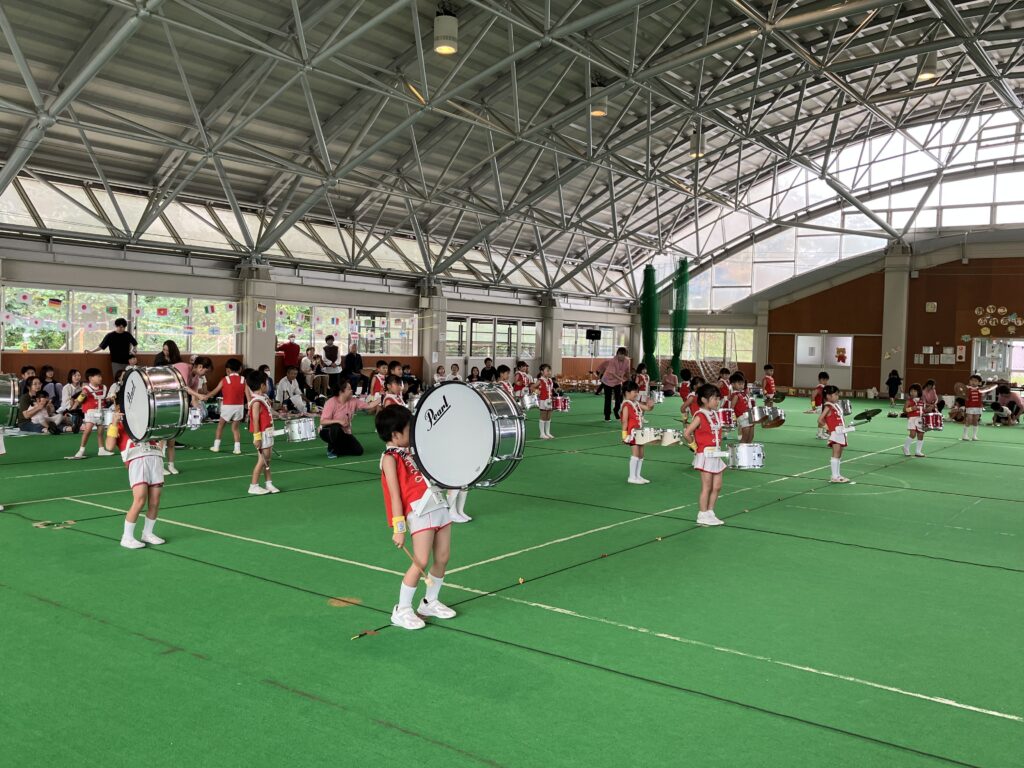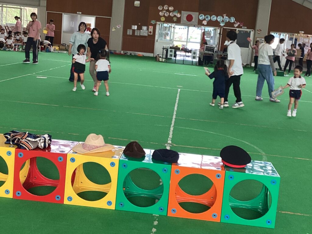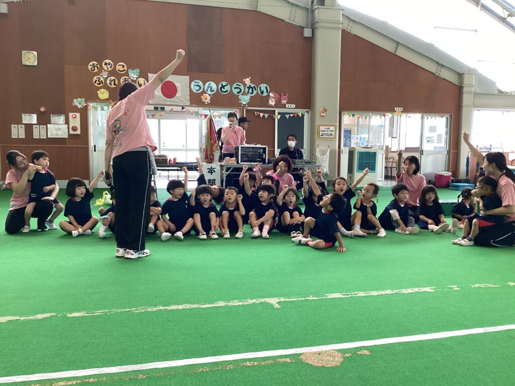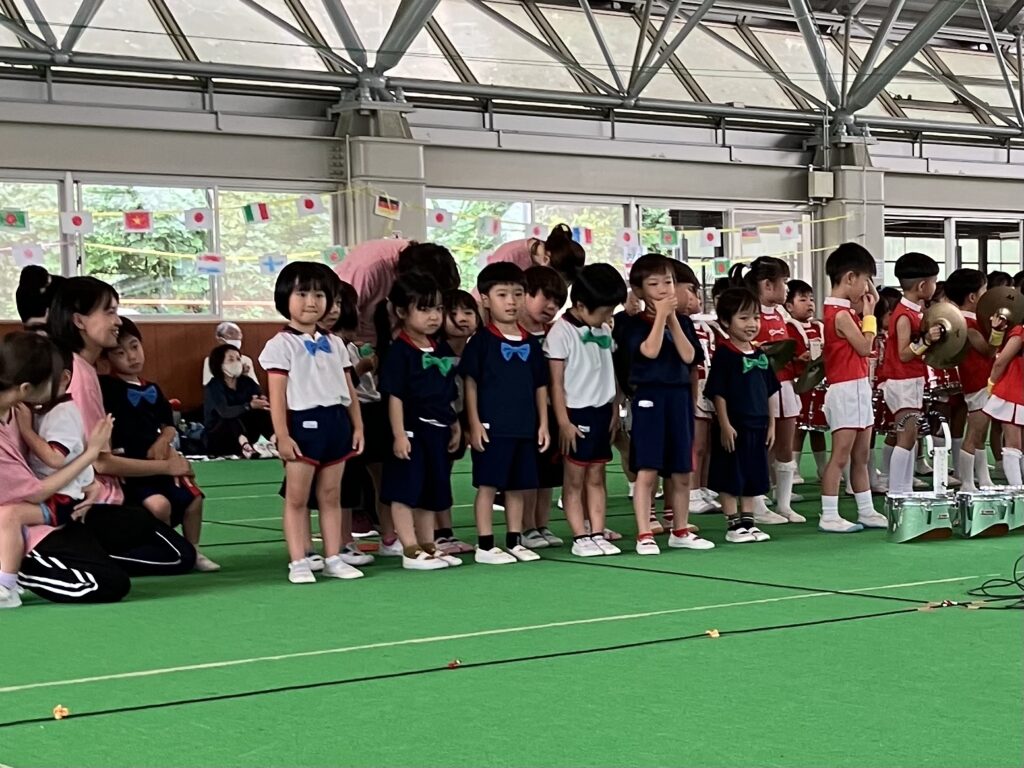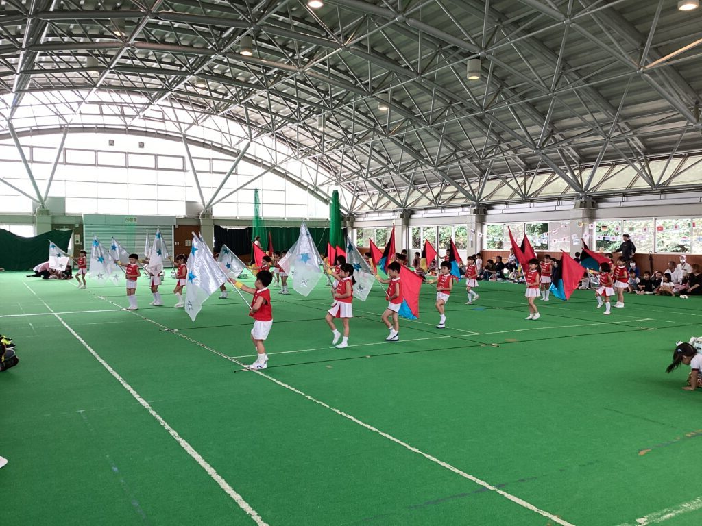 10月11日(土)に、第52回親子ふれあいうんどう会がふれあいドームにて行われました。かけっこをしたり、親子競技をしたりと子どもたちはとてもいい笑顔で参加できました。競技の大トリは、ふじぐみとうめぐみによるマーチング&マスゲームでした。たくさん練習した成果をおうちの人に見てもらうことができました。閉会式では、おうちの人の手作りの“世界に一つだけのメダル”を首にかけてもらい、大満足な子どもたちでしたよ。メダル製作のご協力ありがとうございました。