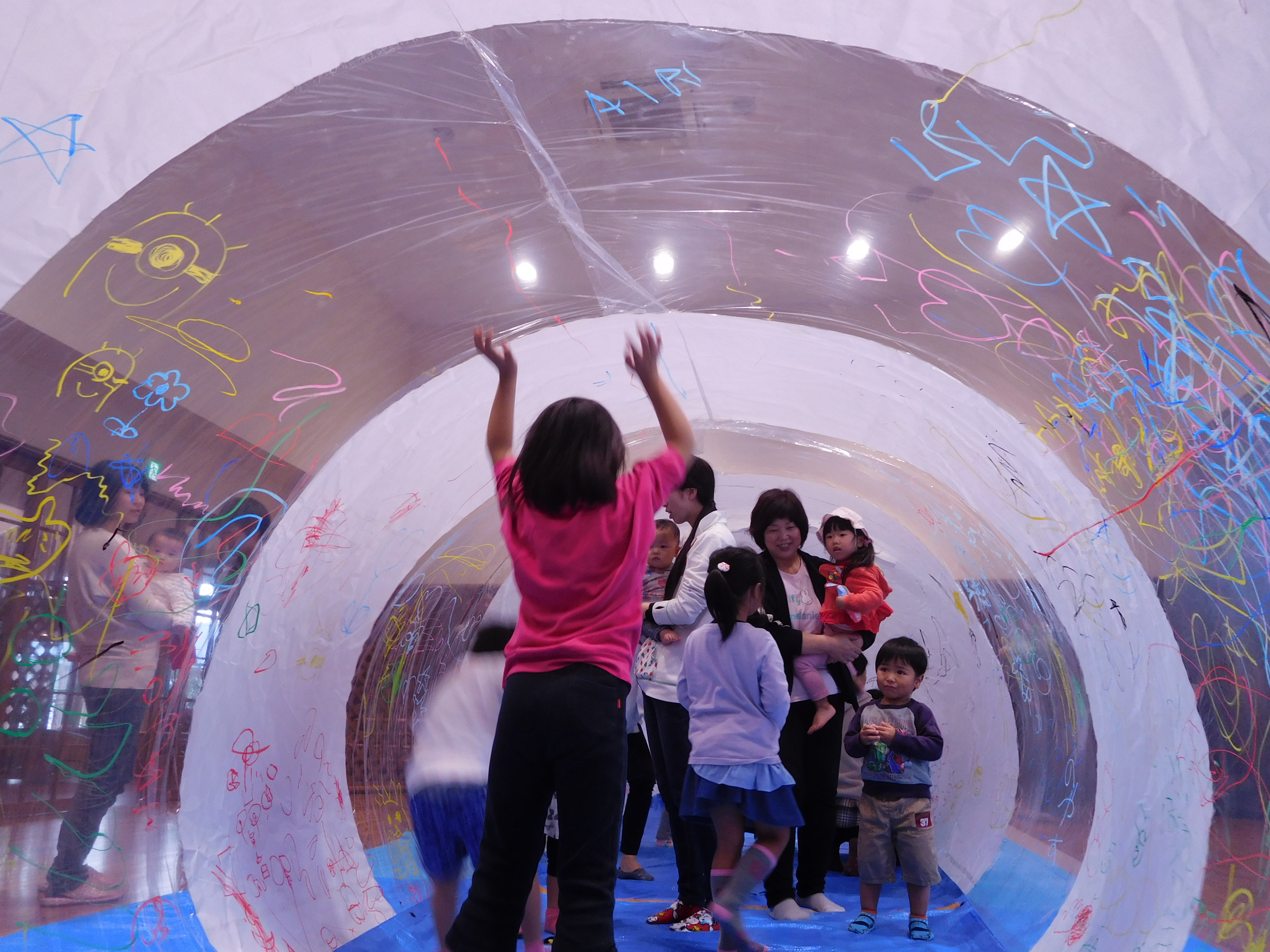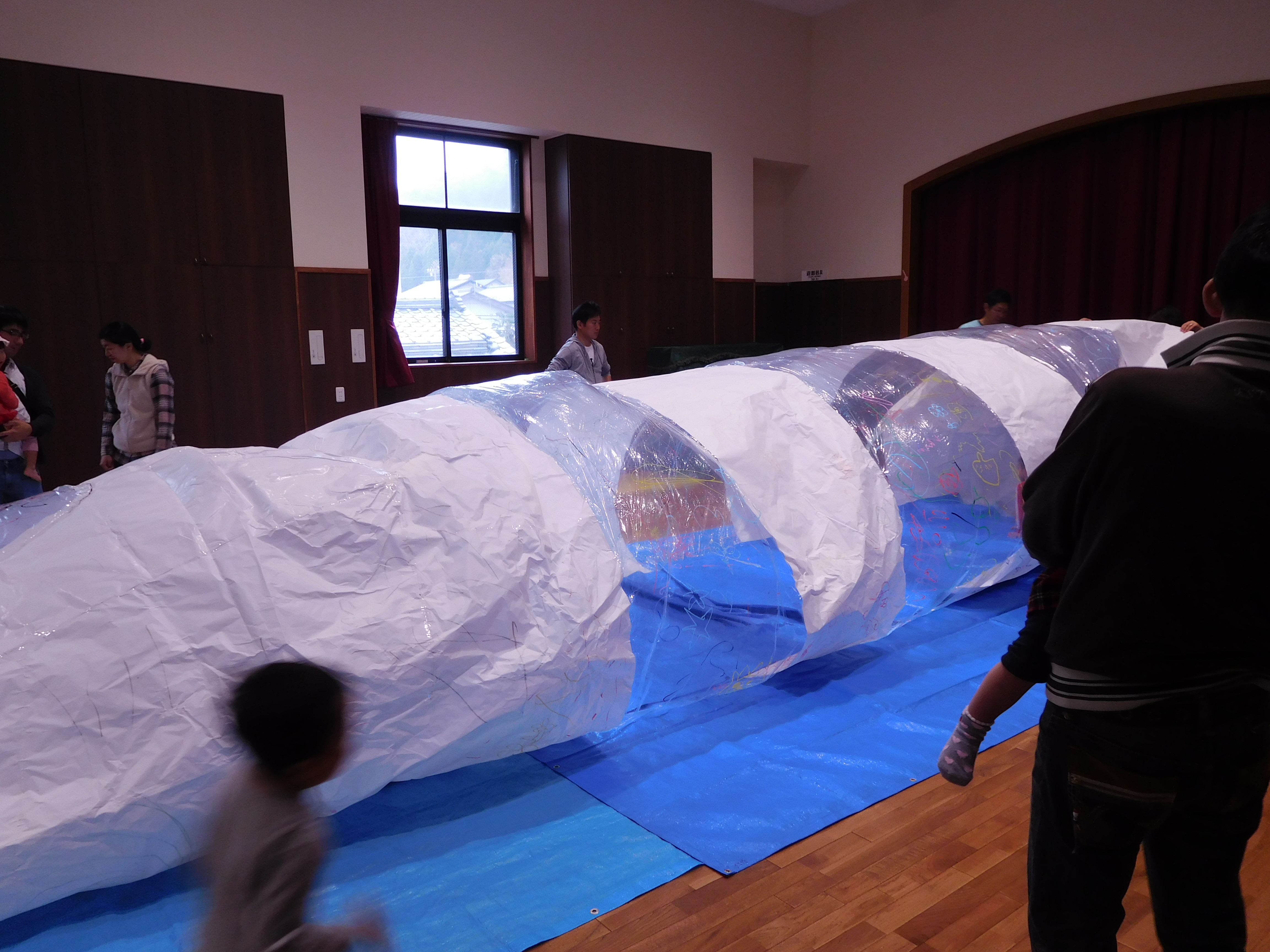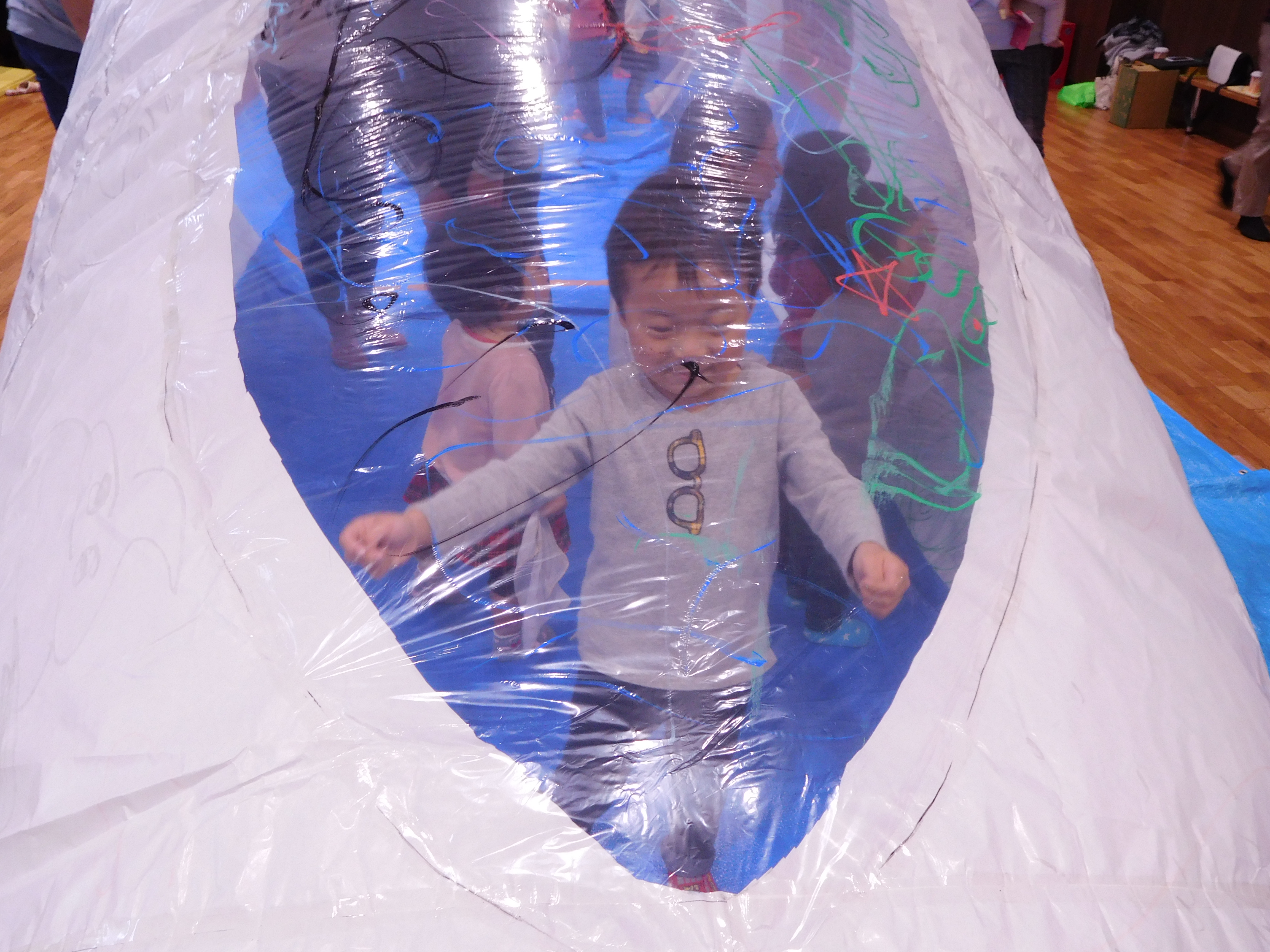 ムーブメントホールいっぱいに膨らんだ新幹線ドームは子どもたちや大人もビックリ!!