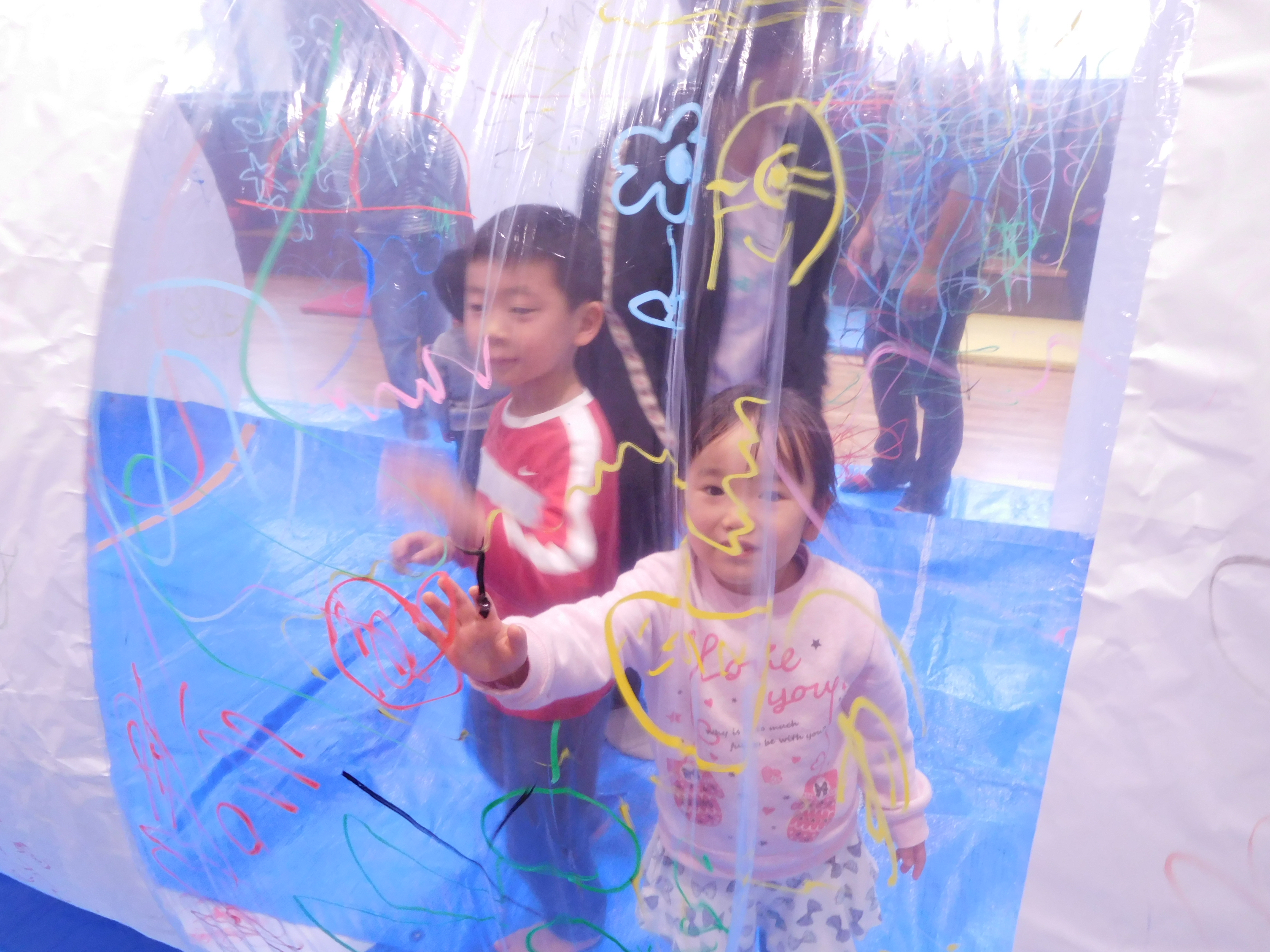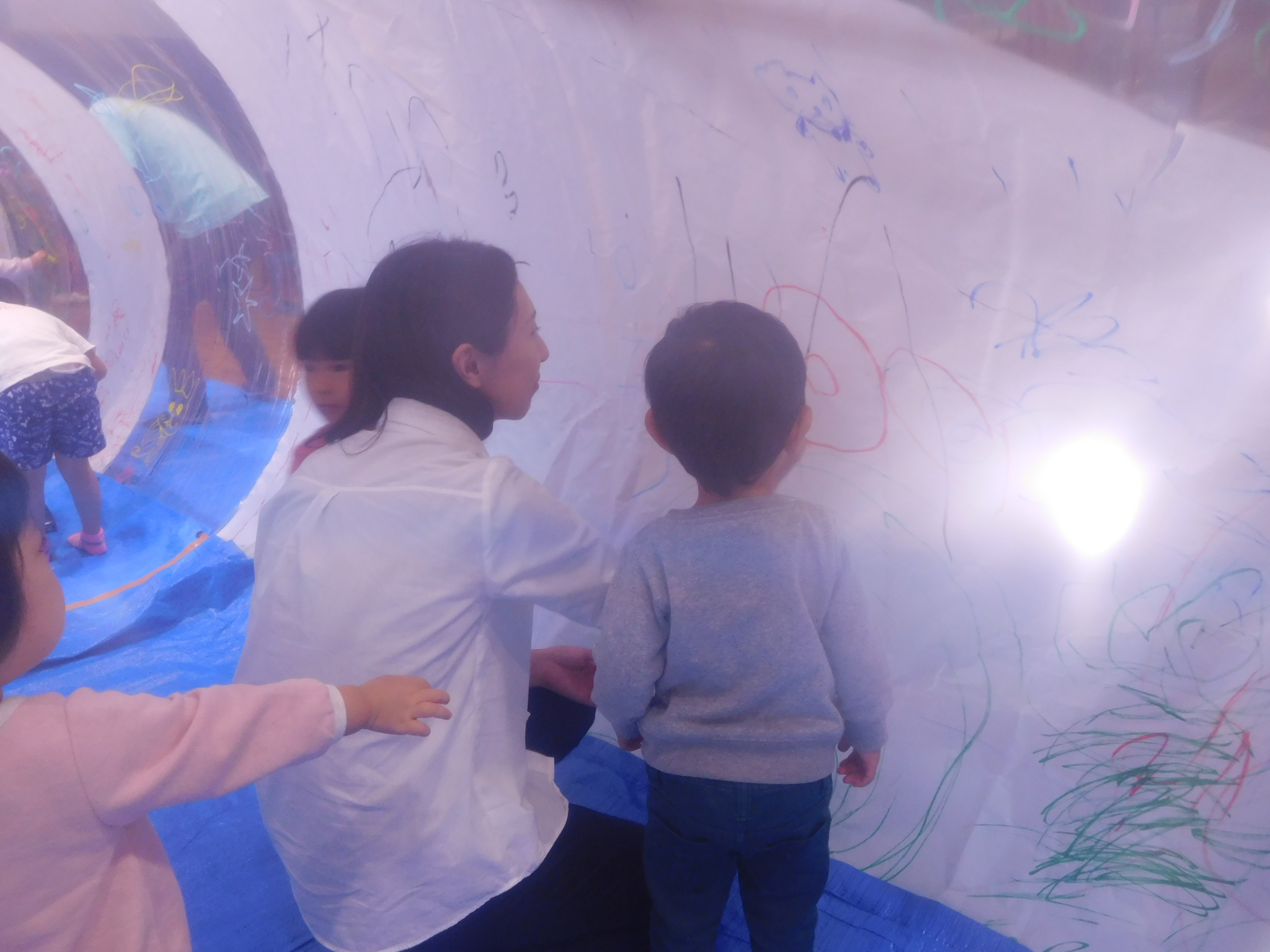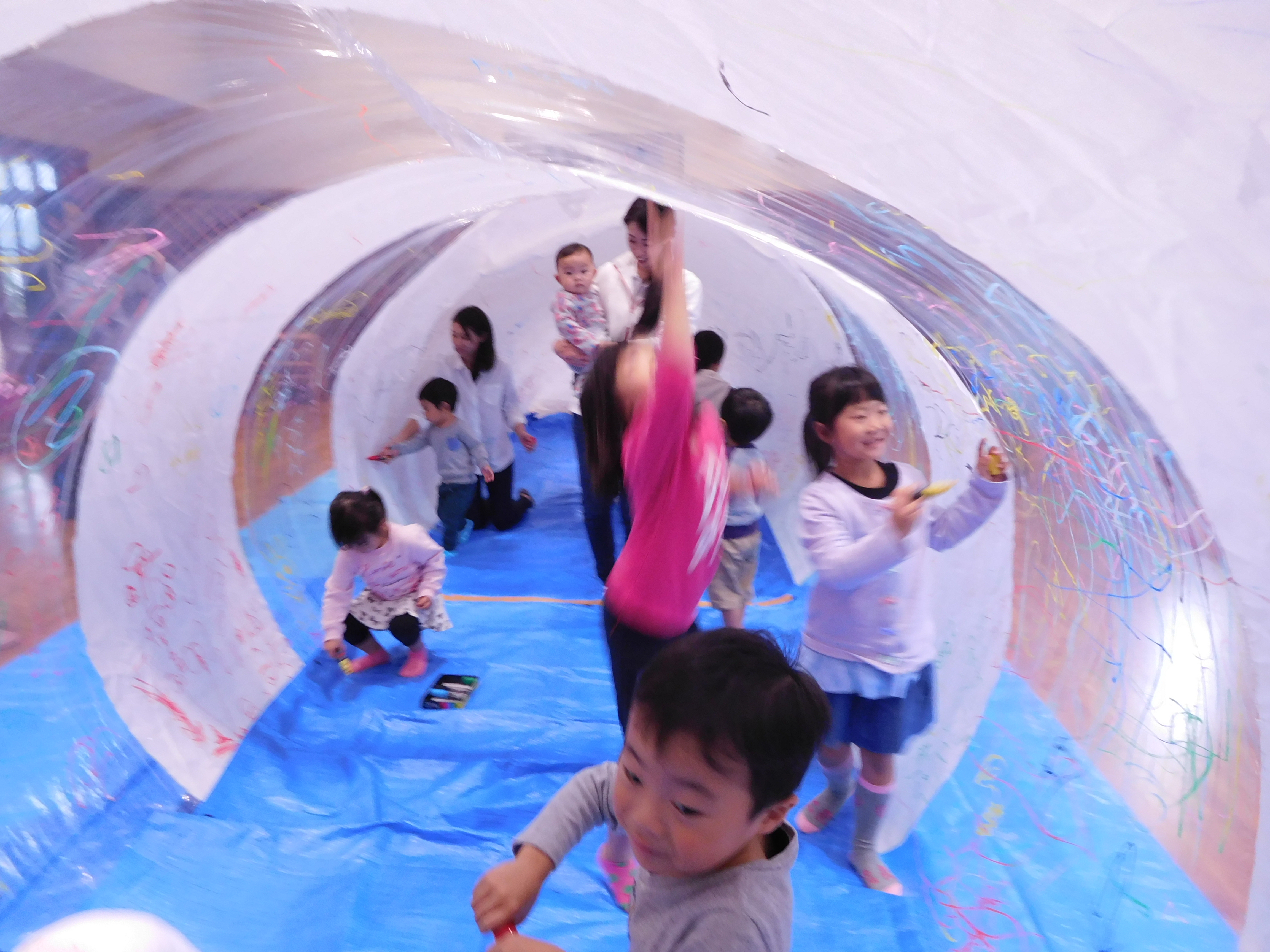 ムーブメントホールいっぱいに膨らんだ新幹線ドームは子どもたちや大人もビックリ!!