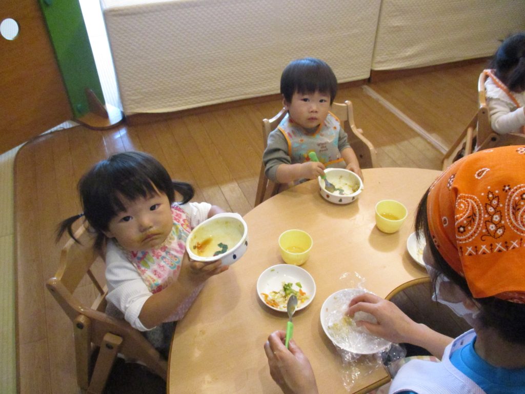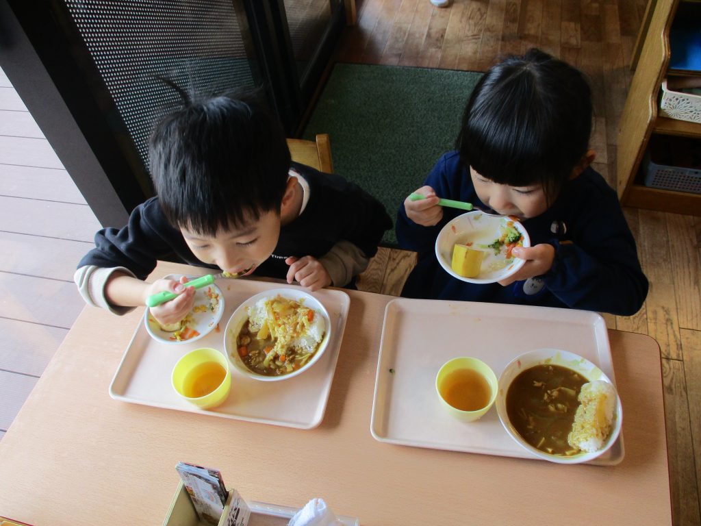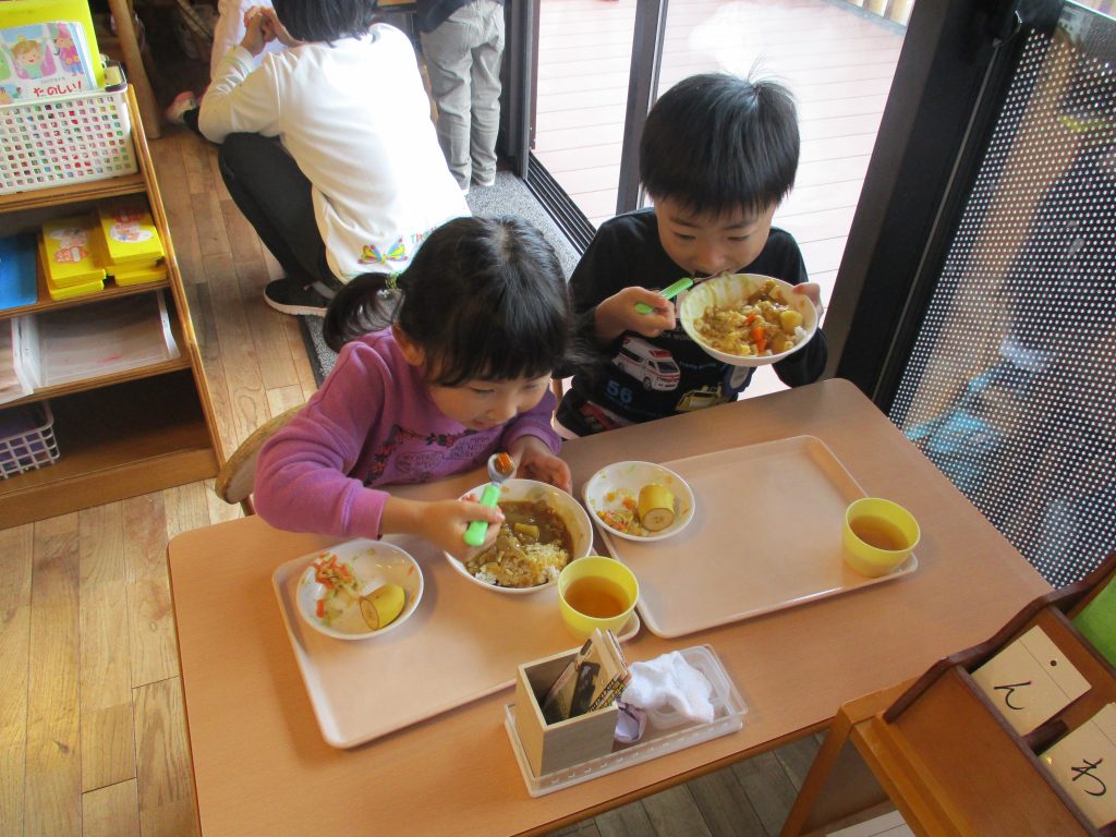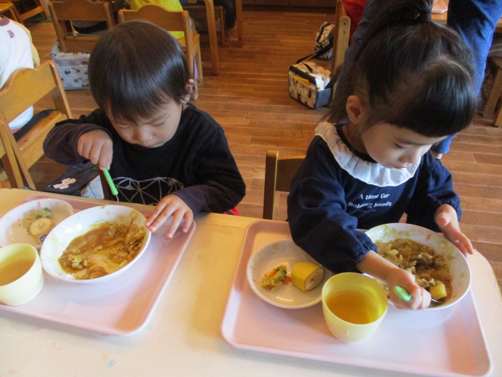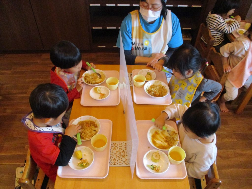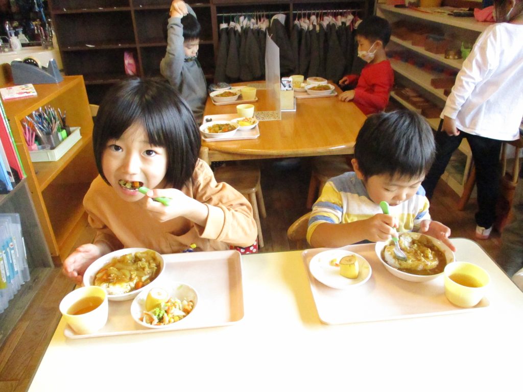 お知らせ2022/10/12 うめ組の料理活動 <本日の給食メニュー> ・森のきのこのカレーシチュー ・野菜の胡麻ドレッシング和え ・バナナ 子どもたちが切ってくれた人参が入ったカレーシチュー 全園児で美味しくいただきました