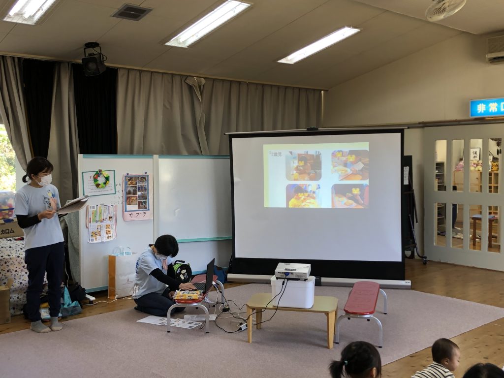 食育講座では、清水台こども園から栄養士の方と参加されたおうちの方とのこどもたちの食について語り合いができました