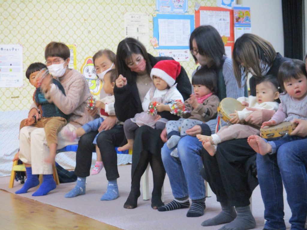 おひげのサンタさんが登場、タンブリンやすずのステージやダンスを披露しました
