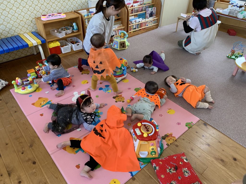 すくすくキッズ2023/10/27 10月のすくすくキッズ 10月のすくすくキッズは講座が盛りだくさんでした 木育では、いい仁王がする木の玉のおふろに入って感触やにおいや固さなどを肌で感じました ふれあい遊びはpapaハンズの方が来られて、楽しく親子ふれあい遊びを楽しみました オカリナはきれいな音色を真剣に聴く姿がかわいかったですよ 今月はハロウィンは親子で楽しみました 帽子を手作りしたり、みんなで記念写真を撮り、ハロウィン気分を子どもたちと楽しみました