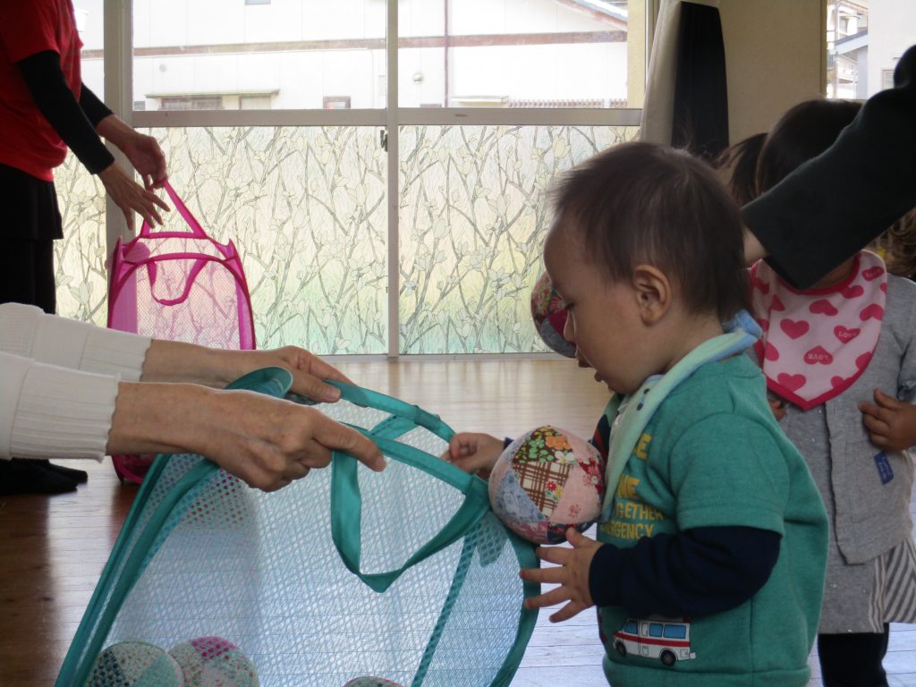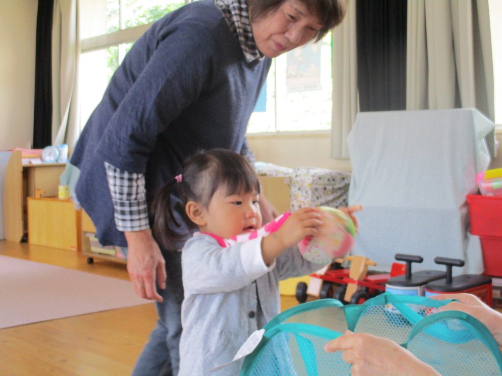 新聞紙を使ってくぐったり上に乗ったり、ビリビリに手でちぎって両手ですくってばんざ~い!!ふわふわと降ってくる新聞紙に大歓声でした